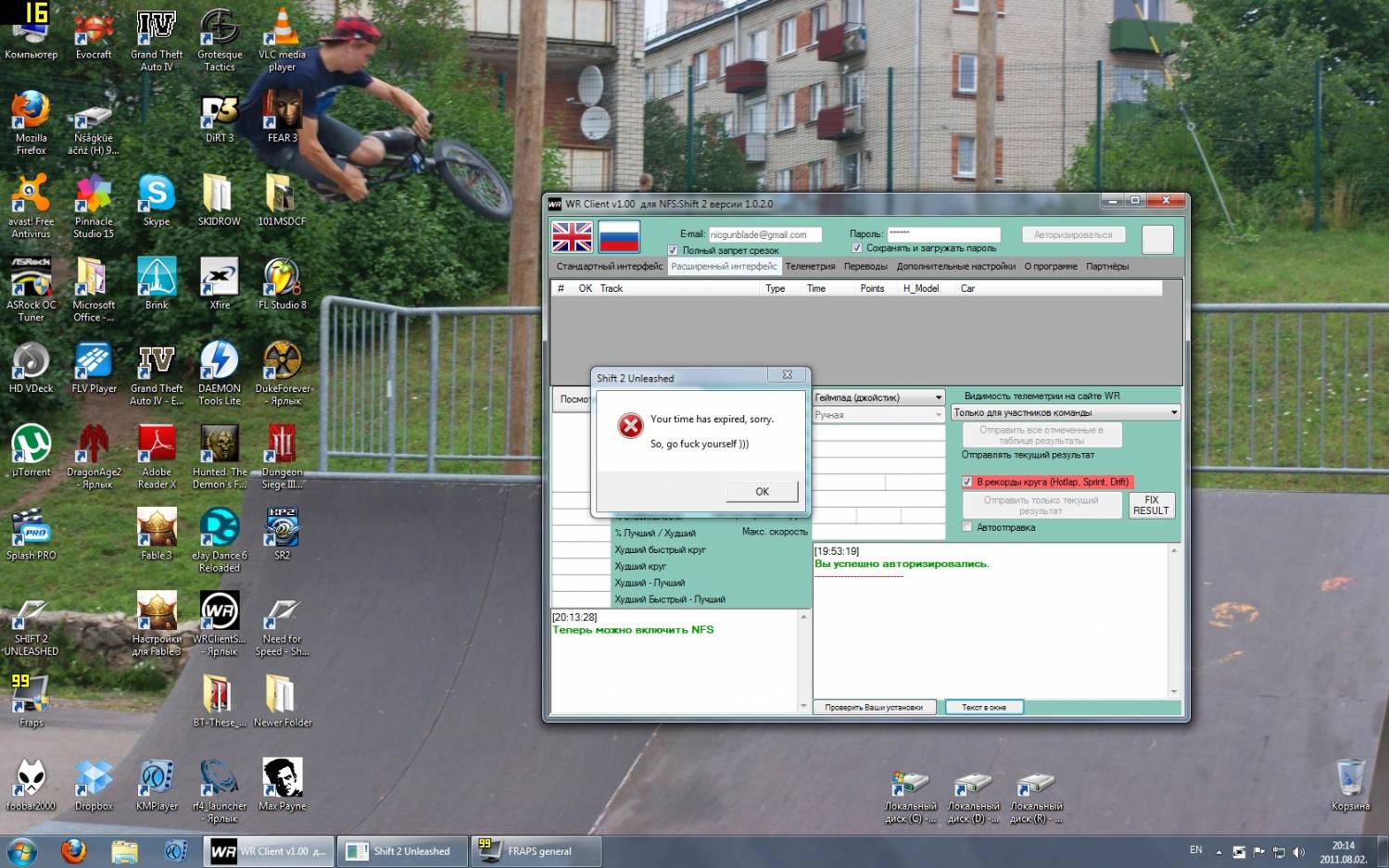 | я уже попробовал... http://shift2.wrecord.com/player_info.php?id=204 обязательно пропатчись и поставь DLC, без него клиент отсылать данные не будет... да и еще все модифицированные файлы игры тоже надо вернуть в исходное состояние... зачетно )