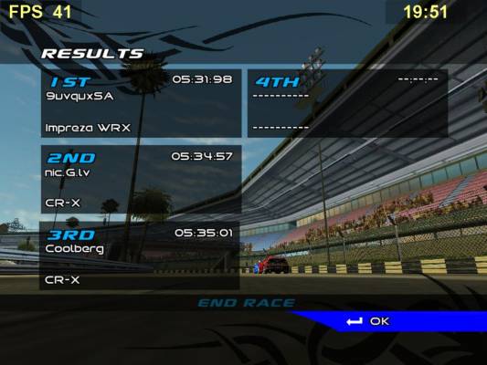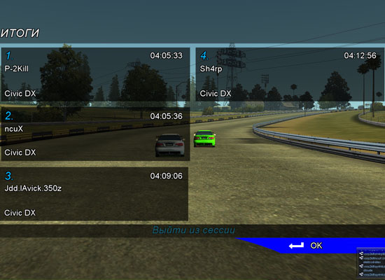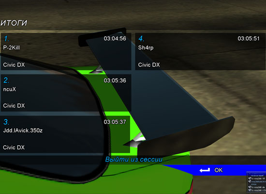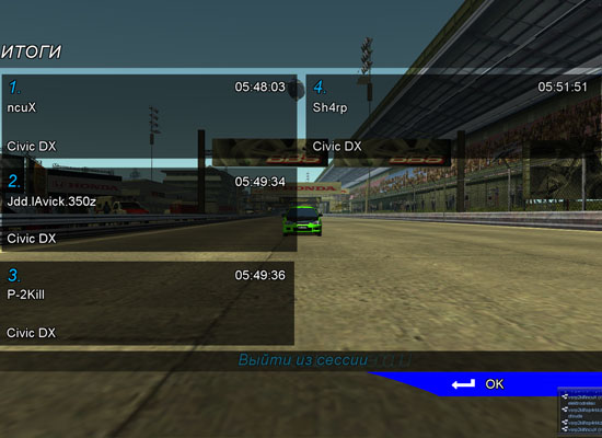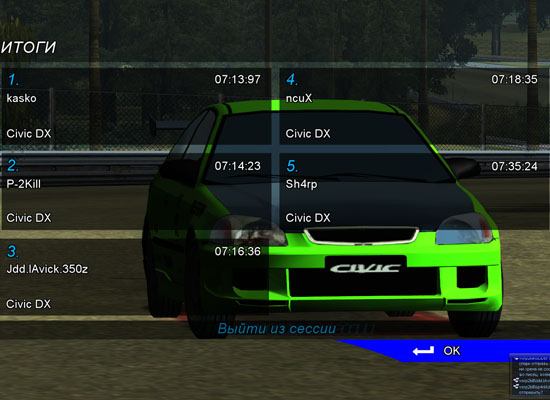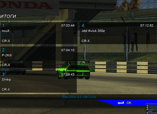 Заезды в прямом направлении на CR-X Заездны в обратном направлении на Civic DX Итог по этапу и общий зачет по JOC