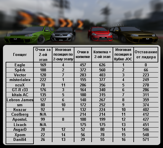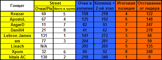 | Общий зачет посчитал. Добавил в шапке. Башка чет болит. Групповой попозже будет